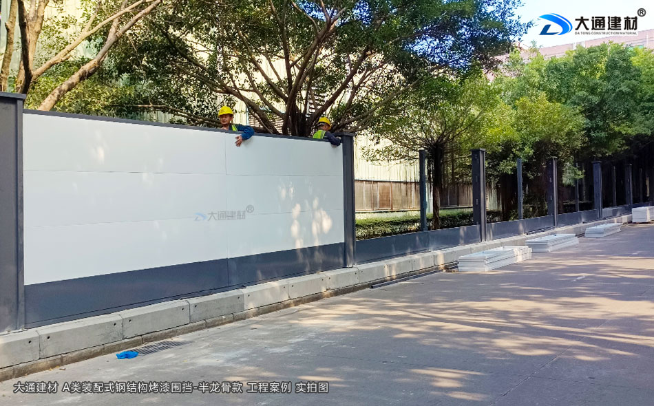 深圳市南山區西麗的城市改造項目工程使用了大通建材A類圍擋 鋼結構烤漆款+圍擋基礎墩,把施工現場的工地的外圍圍起來,在給施工現場建立一個可靠的施工環境的同時起到一定的美化、整潔、統一的作用…