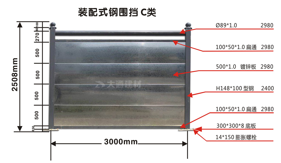 C類鋼圍擋交委款-深圳市政道路圍擋工程-A/B/C類圍擋-深圳市大通建材有限公司鋼圍擋生產定制廠家