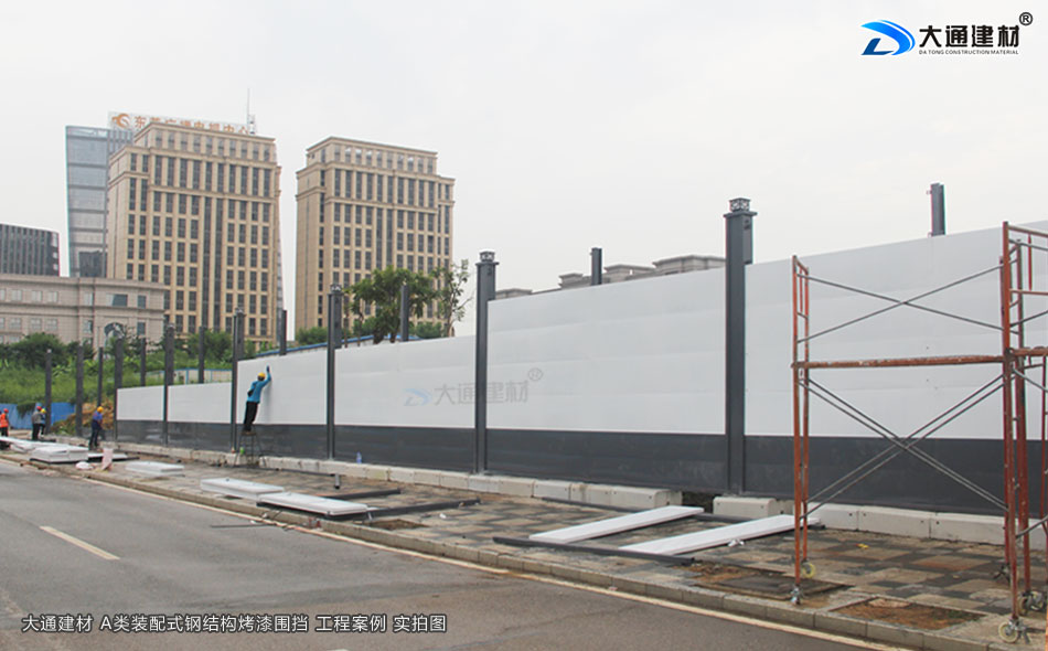 東莞城市建設(shè)圍擋使用大通建材裝配式鋼結(jié)構(gòu)圍擋烤漆A款定制4米高+圍擋基礎(chǔ)塊把施工場(chǎng)所圍起來(lái),為施工安全貢獻(xiàn)一份力量