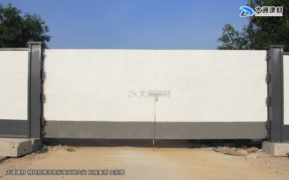 施工安全方案解決工程師,24小時在線等候您的咨詢!我們知道現在市政要求基本上每一個項目施工工地現場都需要安裝圍擋護欄后,方可施工,而施工現場工地大門基本是伴隨著施工圍擋存在的。今天大通小編與大家看看大通鋼結構烤漆款標準工地大門有哪些款式。