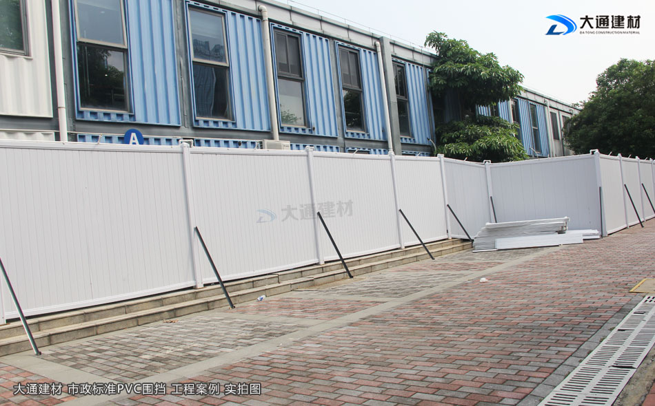 深圳大通建材PVC圍擋表面經烤漆工藝噴涂、表面光滑,具有美觀環保、安全穩固、經久耐用等特點,適合市政道路建設施工、地產工程項目建設施工、管網改造施工、路橋維護施工等工程選用。