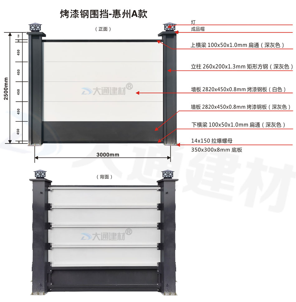 深圳大通建材 裝配式烤漆鋼圍擋-惠州A款 安裝說明