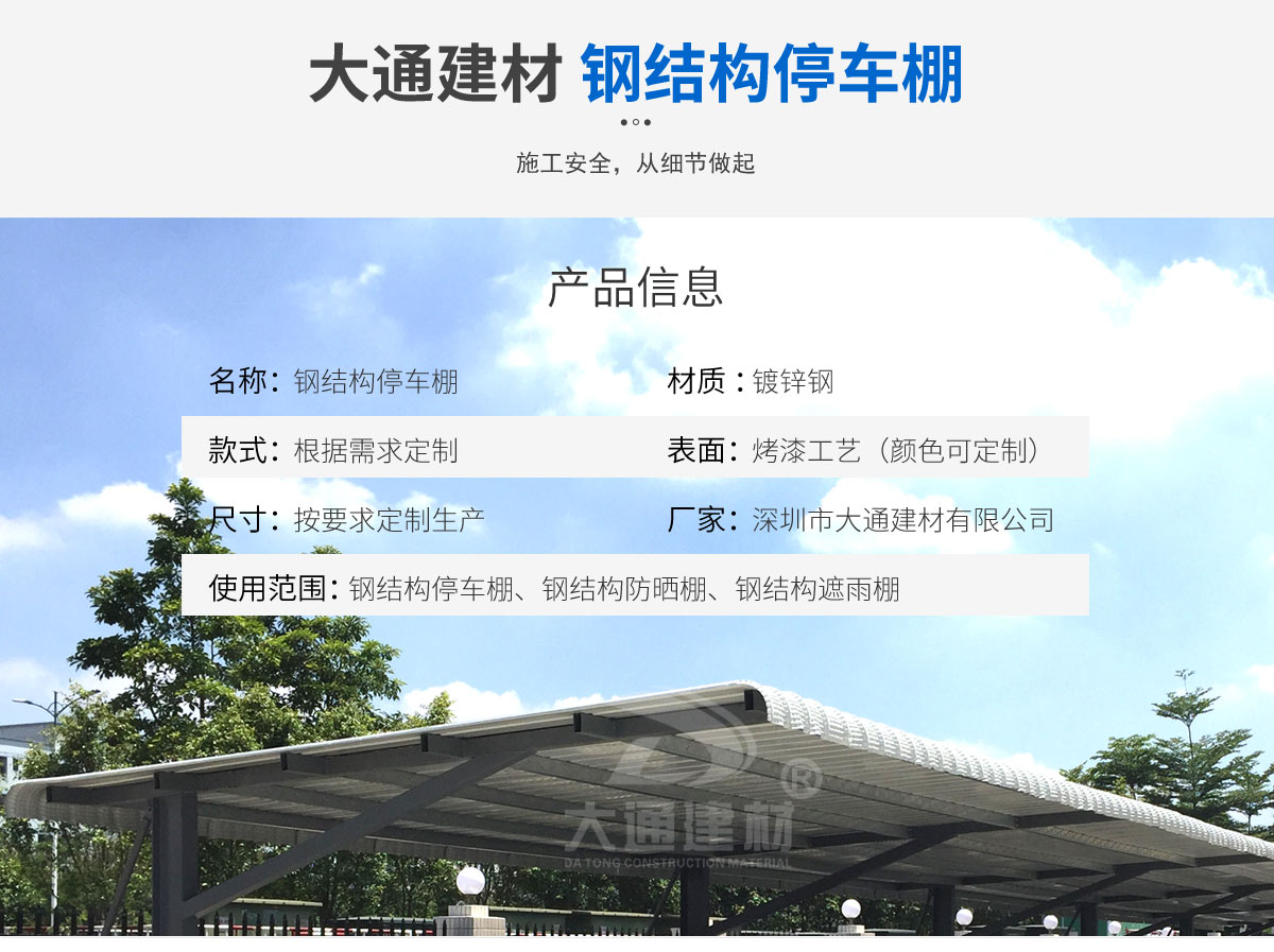 來源:深圳市大通建材鋼結(jié)構(gòu)停車棚生產(chǎn)廠家發(fā)布時間:2024-08-01點擊數(shù):0