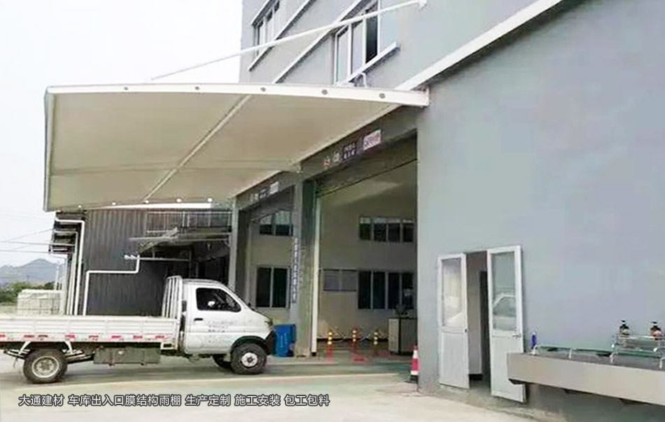 深圳市大通建材車庫(kù)出入口膜結(jié)構(gòu)雨棚可根據(jù)實(shí)際需求進(jìn)行定制和設(shè)計(jì)調(diào)整,滿足不同場(chǎng)所和用途的需求。大通擁有專業(yè)的生產(chǎn)定制、施工安裝 車庫(kù)出入口膜結(jié)構(gòu)雨棚的團(tuán)隊(duì),廠家直銷各類膜結(jié)構(gòu)雨棚價(jià)格便宜。更多具體詳情可致電 13826562448 梁先生 期待您的來電咨詢選購(gòu)